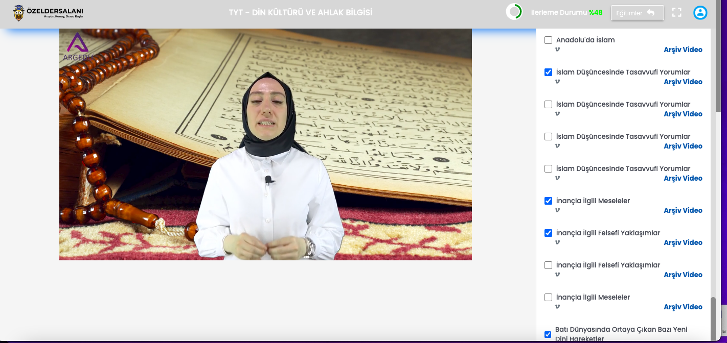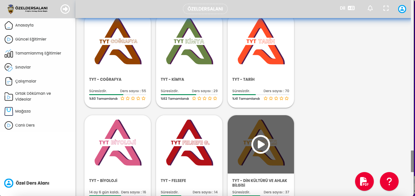 Üniversiteye hazırlanan, hedefleri yüksek olan öğrencilerin tercihi.. Tüm dersler Milli Eğitim Bakanlığı’nın (M.E.B.) müfredat programına %100 uyumlu şekilde dizayn edilmiştir. TYT Din Kültürü ve Ahlak Bilgisi paketimiz, MEB kazanımlarına uygun, yeni nesil soru mantığını kavratan, kazanım kavramalarla birlikte bol örnekli, 3D arayüz ve animasyonlarla desteklenen zengin içerikle eğlendiren ve öğreten bir sistemdir. Tüm konuları ve kazanımları içermektedir. Derece yapmak isteyenlerin tercih ettiği bu paketle, konu eksiğin kalmayacak!